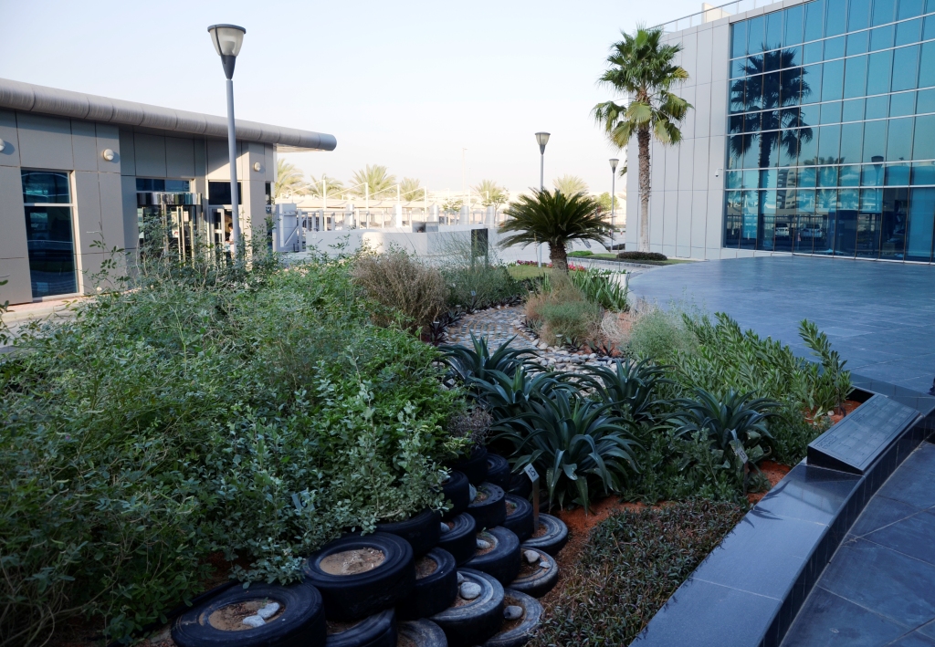 A low water usage, indigenous, recycled product garden was commissioned by the Head of Sustainability at Etihad Airways Head Quarters in Abu Dhabi, UAE.